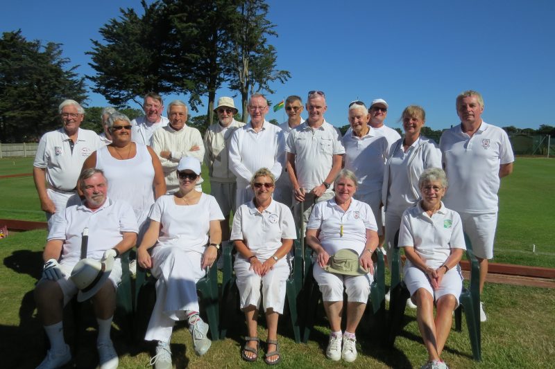 Newport’s three lawns were bathed in warm sunshine for the whole day. Once the teams had arrived and introduced themselves to each other, renewing some long standing friendships, the 8 players took to the lawns for a 10 minute practise session.